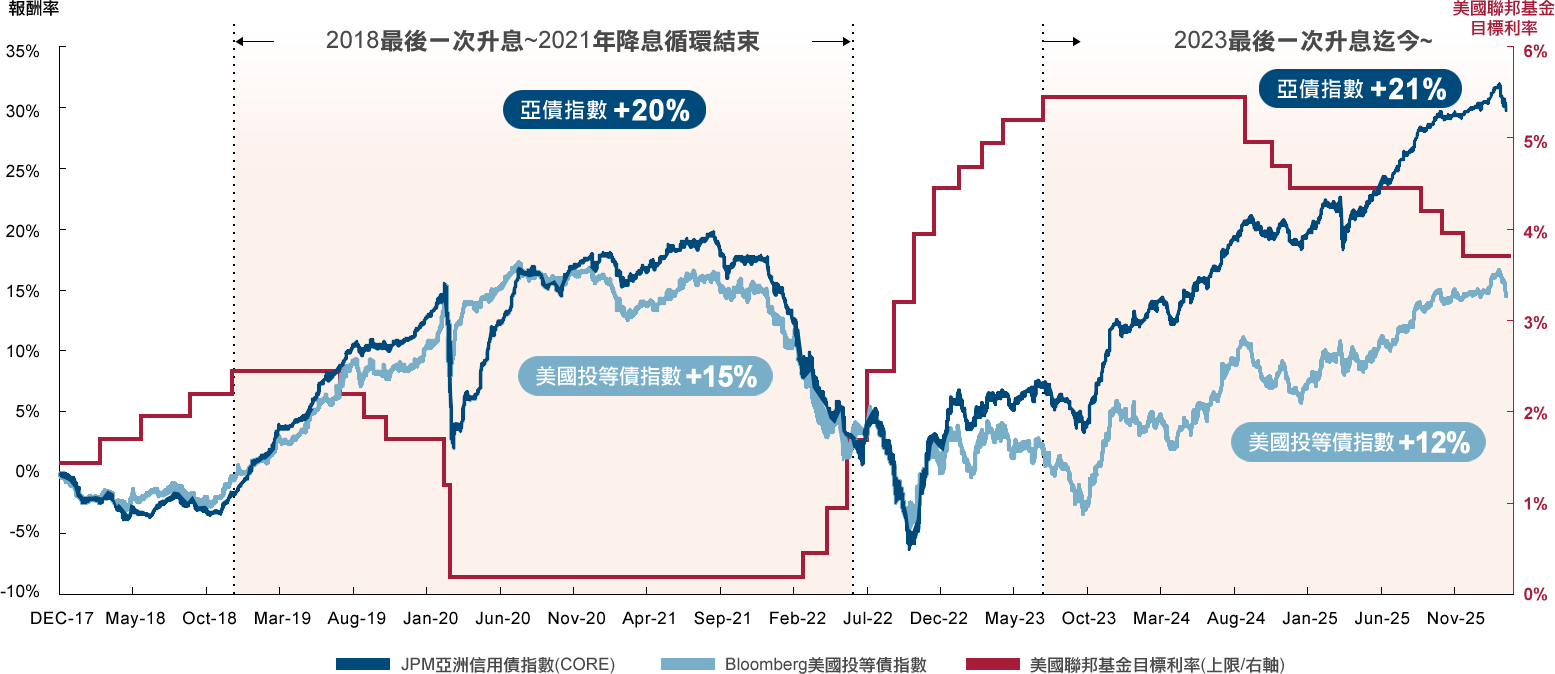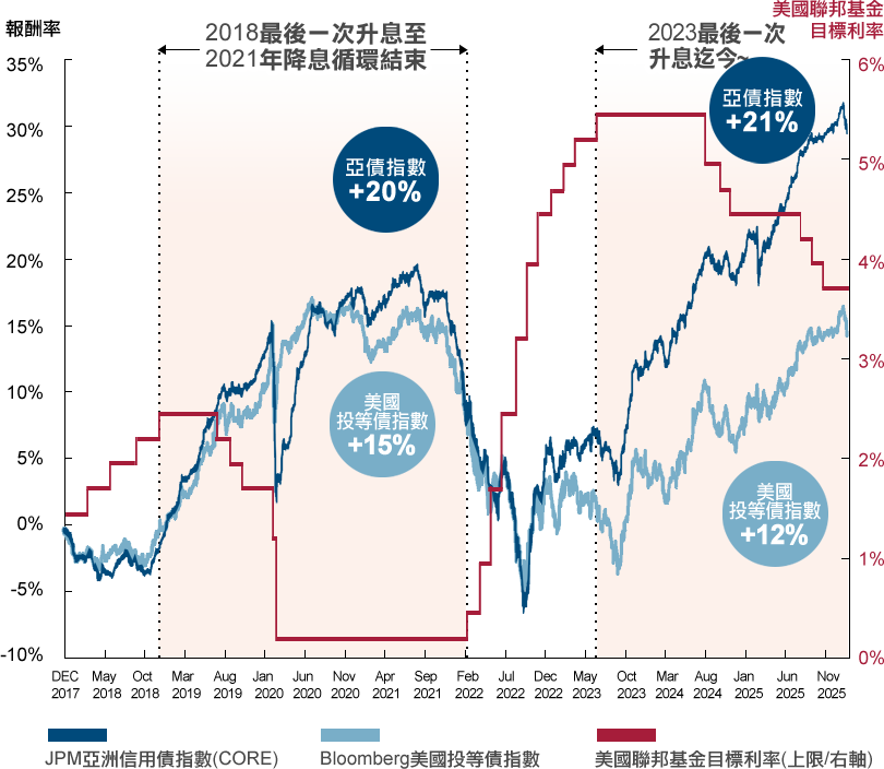 資料來源: Bloomberg 、瑞士隆奧、MorningStar,MorningStar分類:Asia HC bonds,展新投顧整理,2026/2。
