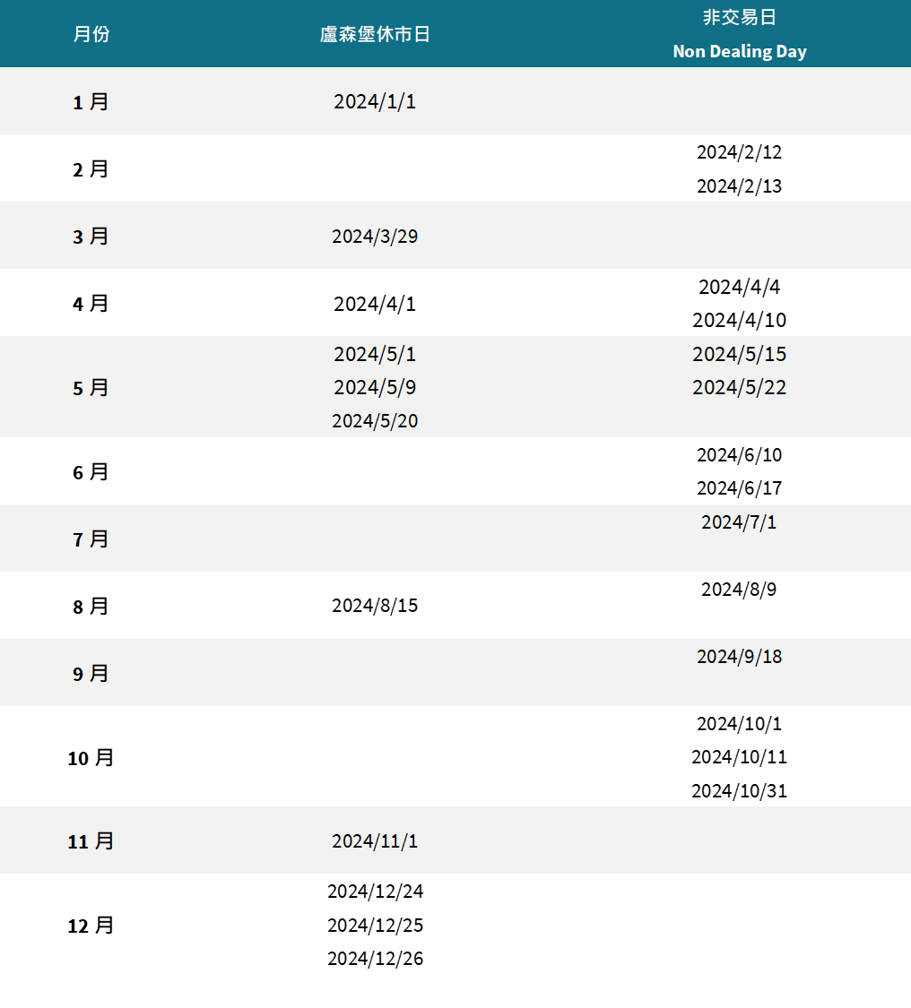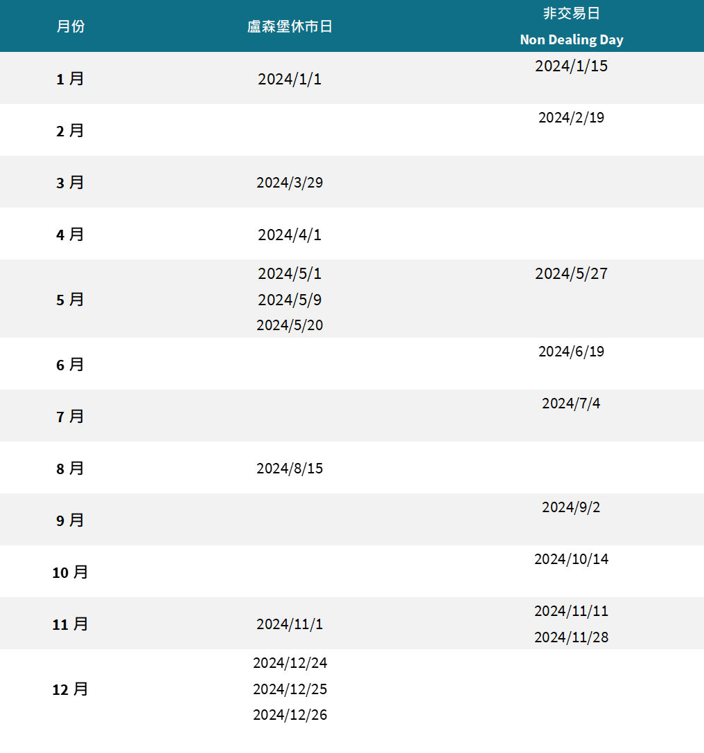 瑞士隆奧系列基金 2024 年度基金行事曆