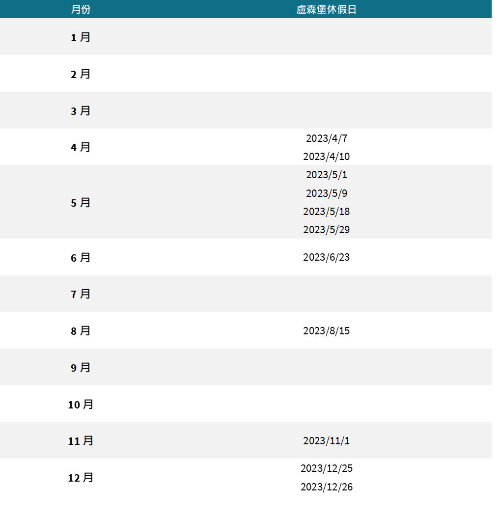 瑞士隆奧系列基金 2023 年度基金行事曆