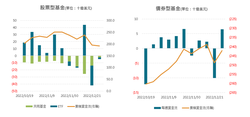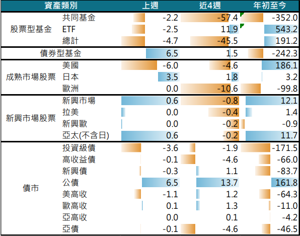 上週資金小幅流出股票型基金,共同基金和ETF均賣超,部分資金轉至債券型基金,買超額創去年11月以來新高