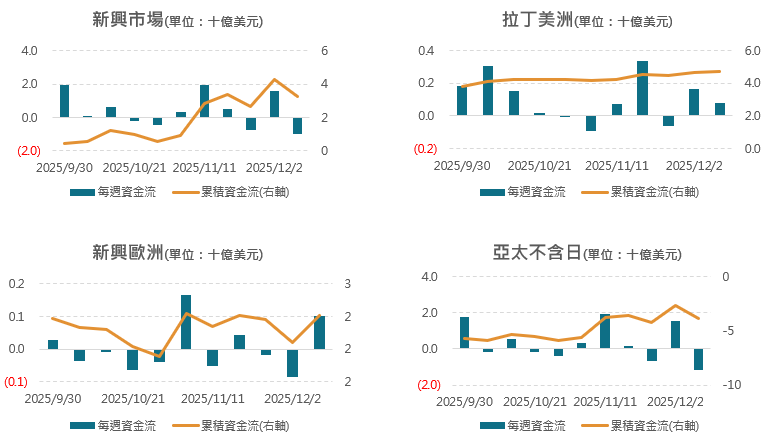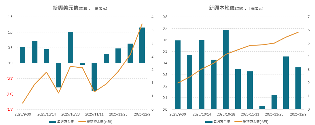 註:因2025年感恩節假期,該期間僅提供新興市場股票、新興美元債與新興本地債之資金流數據