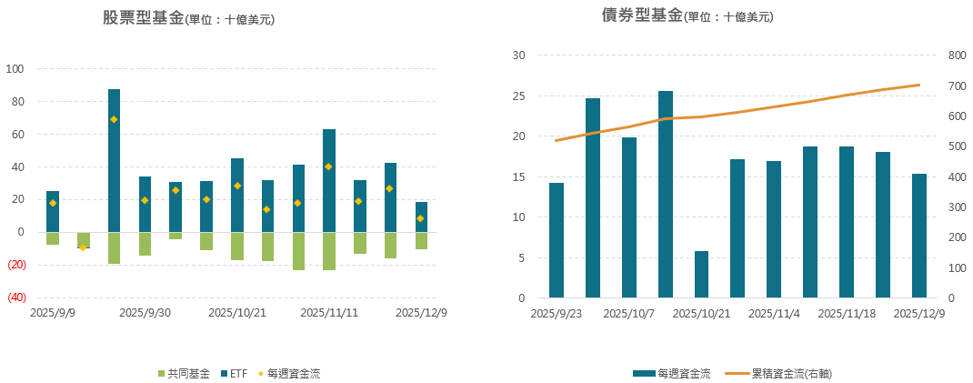 【2025/11/27-2025/12/3】股票資產以成熟市場較受資金青睞,新興市場呈淨流出;債券資產全線獲得資金淨流入,其中信用債更受投資者歡迎。
