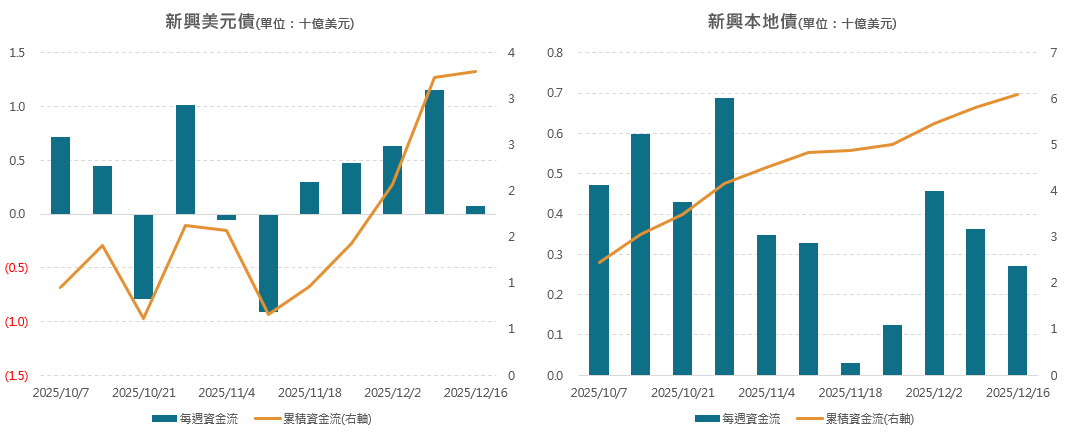 註:因2025年感恩節假期,該期間僅提供新興市場股票、新興美元債與新興本地債之資金流數據