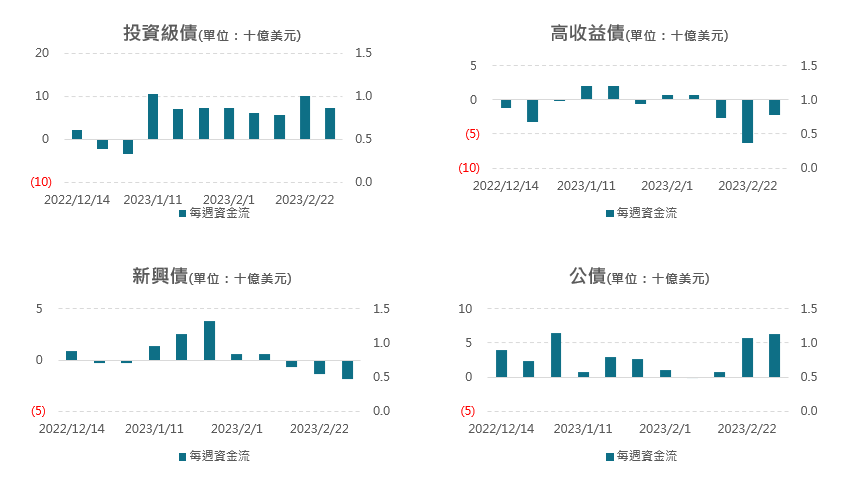 高收益債和新興債均由賣轉買,投資級債連續9週買超,而公債連續4週買超,整體債市持續吸金