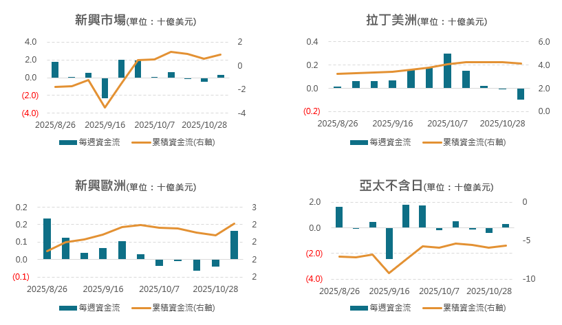 註:因2024年聖誕與新年假期,該期間僅提供新興市場股票、新興美元債與新興本地債之資金流數據。