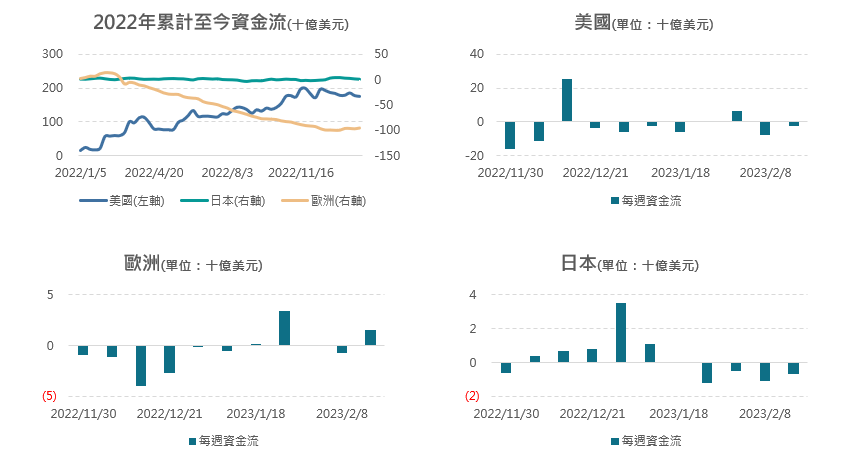 成熟市場唯歐股獲得資金注入,財報佳推升歐股表現,日股不受資金青睞,連續4週淨流出