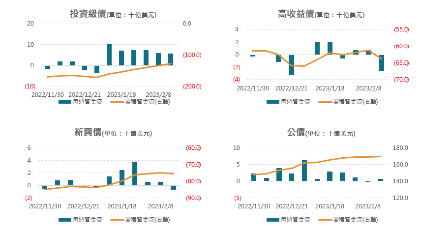 整體債市持續吸金,但高收益債和新興債由買轉為賣超,高收益債賣超金額創近7週以來新高