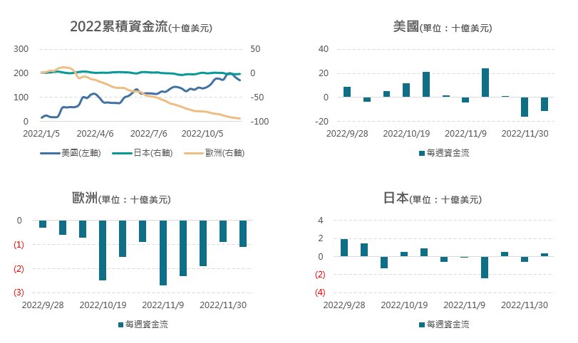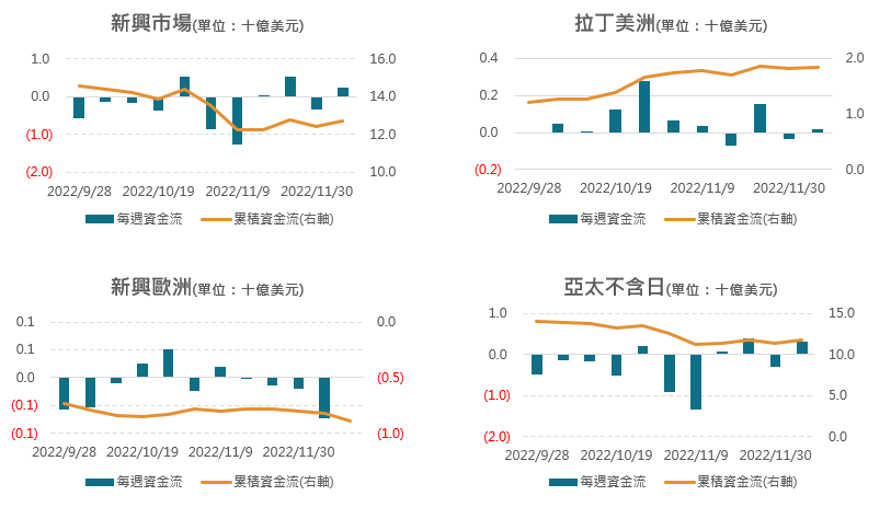 中國疫情政策的鬆綁激勵A港股上漲,資金流入亞太不含日區域,新興市場整體由賣轉買超