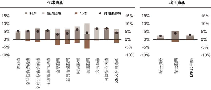圖 1. 2026 年預期報酬展望 —— 全球與瑞士市場
